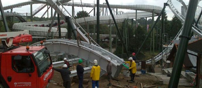 Kranarbeiten in Soltau mit HÜFFERMANN. Neue Achterbahn im Bau. Mieten bei HÜFFERMANN.