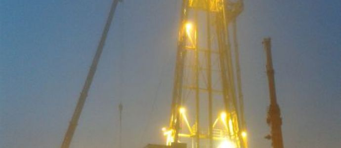 Bohrturm-Aufbau mit Kranen von Hüffermann
