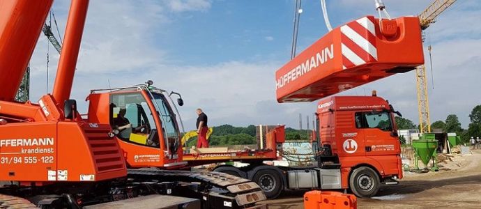 Unser neu gelieferte LTR 1100 wurde vergangene Woche in Norderstedt in der Nähe von Hamburg aufgebaut. Der Kran wurde für den Transport zerlegt und mit Hilfe von drei LKW´s zur Baustelle gebracht. Vor Ort wurde dieser dann vormontiert damit nächste Woche Kranarbeiten für einen Betonbau starten können.