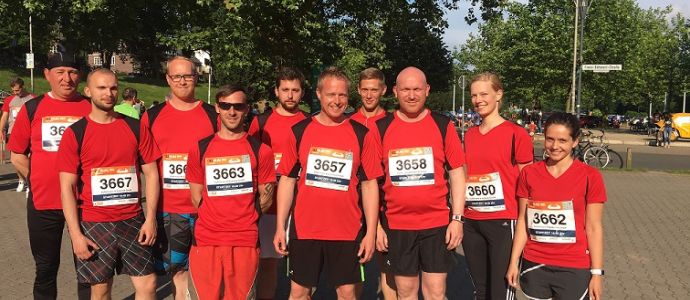 Fitness und Gesundheit spielt im heutigen Leben eine immer größere Rolle. Auch wir, die Firma Hüffermann Krandienst GmbH unterstützt dies. Aus diesem Grund haben wir eine eigene firmenin-terne Laufgruppe gegründet, die alle Mitarbeiter motivieren soll fit zu bleiben. Wir laufen ein bis zweimal pro Woche nach dem Feierabend und nehmen an verschiedenen Veranstaltungsläufen teil. Dabei geht es vielmehr um die gemeinsame Teilnahme und dem Spaß am gemeinsamen Lau-fen, als um die beste Leistung. Auch dieses Jahr waren wir wieder beim B2Run in Bremen am 02.06.2016 am Start. Nachdem wir im vergangenen Jahr bereits 7 Teilnehmer waren, haben dieses Jahr sogar 11 Mitarbeiter von Hüffermann teilgenommen.