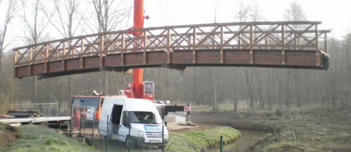 Mithilfe eines Kranes von Hüffermann konnte die neue "Weiße Brücke" in Harpsedt eingesetzt werden.