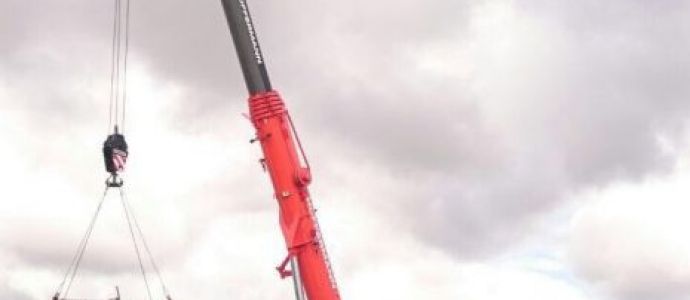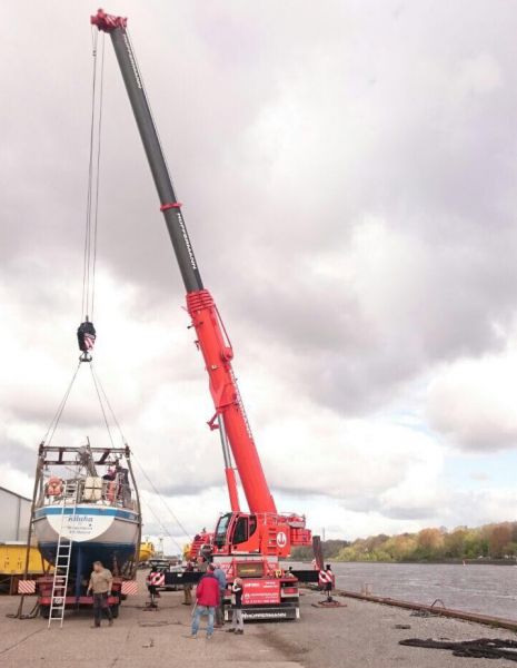 Hüffermann Mobilkran läßt 12 t Boot wieder sicher zu Wasser.