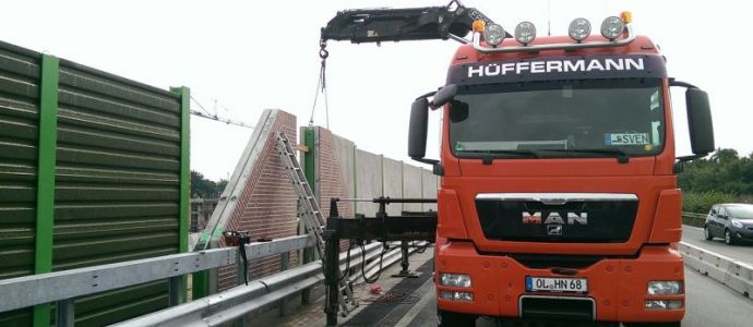 An der A293 Abfahrt Bürgerfelde wurden von der Firma Hüffermann Lärmschutzwände mit einem der Ladekrane aufgestellt.