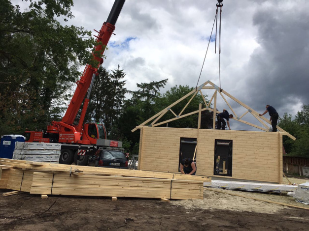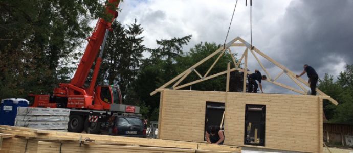 Dachaufbau dank Unterstützung von Hüffermann Mobilkran