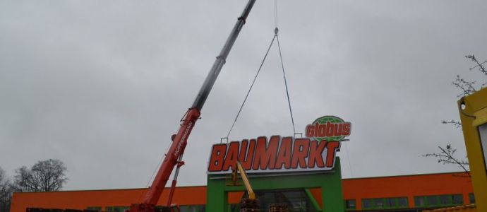 Am Sonntag wurde an einem Baumarkt in der Oldenburger City Schilder montiert.