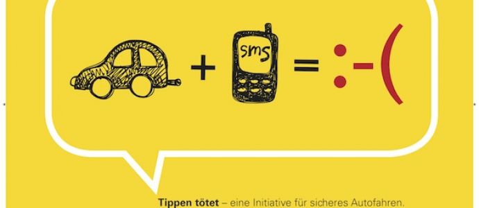 Während des Fahrens aufs Handy schauen und eben eine SMS tippen - Dieses Verhalten bringt die Farer selbst und andere Verkehrsteilnehmer in Lebensgefahr. Mit der landesweiten Verkehrssicherheits-Kampagne "Tippen tötet" sollen alle Verkehrsteilnehmer sensibilisiert werden, ihre Hände am Steuer zu behalten und sich nicht durch ihr Handy ablenken zu lassen. (Quelle: Landesverkehrswacht)