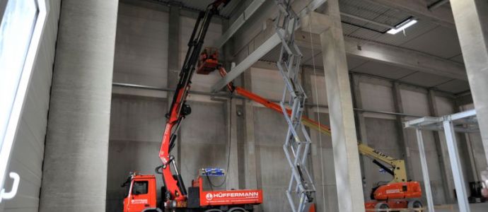 Meist können unsere Krane nur erschwert in Hallen arbeiten, da die geringe Sicht die Arbeit beeinträchtigt.