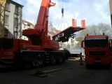 Mit der Unterstützung durch unseren LTM1100-4.2 wurde beim Amtsgericht in Bremerhaven ein Turmdrehkran 71EC aufgebaut. Bereits die Einfahrt war durch die beengten Platzverhältnisse eine Herausforderung und Milimeterarbeit.