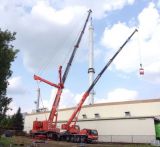 Mit Hilfe unseres 350 to Kranes mit Abspannung und des 70 to Kranes als Nachführ- und Hilfskran wurde in Delmenhorst ein Kamin gesetzt.