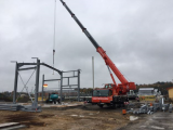 Der Kranfahrer Klaus Fletemeyer hat mit unserem Autokran LTM 1055 eine Stahlhalle mon-tiert. Diese Arbeit war sehr aufwendig, da es viele verschiedene Stahlelemente gab die ein-zeln montiert werden mussten. Außerdem gab es Probleme mit den Bodenverhältnissen, aber auch hierbei haben wir uns nicht aus der Ruhe bringen lassen …